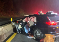 FALLOWFIELD TOWNSHIP, Pa. — Traffic along Interstate 70 was delayed due to an accident Sunday morning in Washington County. Officials say the rollover crash with entrapment occurred just before 5:30 a.m. at mile marker 34.5 in the eastbound lanes. Fallowfield and Bentleyville Fire crews were dispatched to the scene for stabilization and extrication. Crews worked for an extended period of time clearing the scene. There is no word on the condition of the victim. (Photo Courtesy of Bentleyville Fire-Rescue)