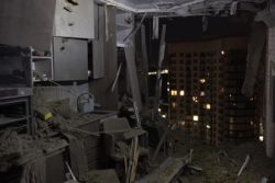 KYIV, Ukraine (AP) — Ukrainian officials said air defenses shot down 20 Iranian-made drones fired by Russia mostly at the Kyiv region early Thursday morning. They said wreckage from the drones fell on four districts of the capital Thursday night, wounding two people and destroying several homes. The latest barrage by the Kremlin’s forces began shortly after midnight and explosions shook different parts of the city. Authorities say two people were hospitalized with shrapnel wounds. In the capital, rescuers extinguished a fire in a 16-story building, as well as in a non-residential building. Debris also damaged the frontage of a 25-story apartment building. Russian strikes have become a grim routine in Ukraine over the almost 17 months of the war.