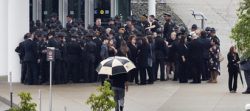 ERIE, Pa. (AP) — A Pennsylvania state trooper who was shot and killed earlier this month when he went to work on his day off after learning his barracks had been attacked by an armed man was lauded during his funeral as a hero who only wanted to serve his community. The service for 29-year-old Jacques “Jay” Rougeau Jr. was held Tuesday at Bayfront Convention Center in Erie. Rougeau was shot June 17 by 38-year-old Brandon Stine of Thompsontown, who also critically wounded another trooper that day in a separate incident before he was shot and killed himself after a manhunt and a fierce gunbattle, Stine’s motive remains under investigation. Rougeau was killed by a gunshot through the windshield of his patrol car. (Photo: AP)