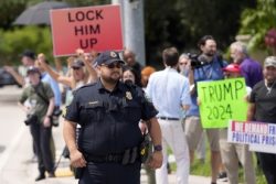 MIAMI (AP) – Donald Trump became the first former president to face a judge on federal charges as he pleaded not guilty in a Miami courtroom Tuesday to dozens of felony counts that he hoarded classified documents and refused government demands to give them back. The history-making arraignment, centering on charges that Trump mishandled government secrets that as commander-in-chief he was entrusted to protect, kick-starts a legal process that will unfold at the height of the 2024 presidential campaign and carry profound consequences not only for his political future but also for his own personal liberty. Trump approached his arraignment with characteristic bravado, posting social media broadsides against the prosecution from inside his motorcade and insisting as he has through years of legal woes that he has done nothing wrong and was being persecuted for political purposes. But he sat scowling inside the courtroom with his arms crossed as a lawyer entered a not guilty plea on his behalf in a brief arraignment that ended without him having to surrender his passport or otherwise restrict his travel. But the gravity of the moment was unmistakable as he answered to 37 felony counts that accuse him of willfully retaining classified records that prosecutors say could have jeopardized national security if exposed, and the trying to hide them from investigators who demanded them back.