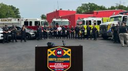 The South Strabane Fire Department and Pennsylvania State Police hosted an educational presentation bringing attention to the Move Over law that drivers must respect when they approach a disabled vehicle or first response vehicle with its emergency lights illuminated. According to Pennsylvania State Trooper Forrest Allison, when a driver encounters an emergency vehicle on a highway, drivers are to move to a non adjacent lane away from the vehicle. If that is not possible, drivers are to slow down to a speed of no less than 20 mph below the posted speed limit. According to Allison first offense fines begin at $250. Subsequent fines could reach $2000 with a drivers license suspension. A $10,000 fine is possible if a driver or first responder is killed by a speeding driver in an accident zone. South Strabane Township Fire Chief Jordan Cramer spoke of the need for the law’s adherence also. His department experienced a situation last month where the department’s ladder truck was on the scene of an accident on Interstate 70 and was struck by a speeding driver that ignored that Move Over law. Cramer also introduced a new safety device that will be installed on all South Strabane Twp. vehicles. The HAAS Alert device will send electronic notices to drivers up to a half mile away of emergency vehicles working ahead so that they may slow down to safely navigate the scene. The device works on Apple Maps and the Waze App. Developers are looking to get it included on Google Maps. In a gesture of support, Larry Winter, President of South Hills Chrysler, Dodge, Jeep, Ram and Kia, has offered to pay for the maintenance costs for the system for South Strabane Township, North Strabane Township and Cecil Township for the next five years. According to Winter, his wife was the impetus for the donation. She heard about the fire truck accident and insisted that they try and do something to help. Only later did they both learn that their son was directly involved with the accident.