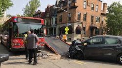 (WPXI) – At least five people were injured in a head-on collision between a Pittsburgh Regional Transit bus and a vehicle this morning. The crash happened in the area of Cedar Avenue and Suismon Street around 10 a.m. A PRT spokesman said a car crossed the center line and struck the bus head-on. The driver of the car was unconscious but breathing, according to the spokesman. The bus driver and three passengers were taken to a hospital for non-serious injuries, the PRT spokesman said.