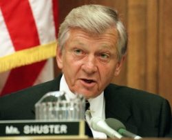 HARRISBURG, Pa. (AP) — Former Congressman Bud Shuster, an influential Republican who strongly backed transportation projects but once ran afoul of ethics guidelines, has died at 91. A close family friend, Rebekah Sungala, said Shuster died peacefully at his farm Wednesday in Everett, Pennsylvania, surrounded by his family. His son, Bill Shuster, succeeded his father in the southern Pennsylvania seat. Sungala said Shuster died of old age. Congressman John Joyce, who now represents the area, called Shuster a “true legend in the halls of Congress.” Shuster resigned in 2001, right after he was sworn in for his 15th term, because he was losing his committee chairmanship.