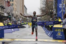 BOSTON (AP) — Defending champion Evans Chebet has won the Boston Marathon again. He surged to the front at Heartbreak Hill to spoil the much-anticipated debut of world record holder Eliud Kipchoge and win in an unofficial time of 2 hours, 5 minutes, 54 seconds. Hellen Obiri won the women’s race in a sprint down Boylston Street to finish in an unofficial 2:21:38 and complete the Kenyan sweep. She is a two-time Olympic silver medalist in the 5,000 meters. The fastest ever fields in Boston included world record holders, Olympic and Paralympic medalists, winners of major marathons from 27 countries and a dozen Boston Marathon champions. (Photo: AP)