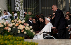 VATICAN CITY (AP) — Pope Francis is celebrating Easter Sunday along with dozens of prelates and tens of thousands of pilgrims and tourists in St. Peter’s Square. Tulips, forsythia and other spring flowers trucked in from the Netherlands made the vast Vatican City space colorful. At the start of Mass, Francis sprinkled holy water and sounded tired as he recited ritual words in Latin. He was back in the publis eye 12 hours after a very long Easter vigil ceremony in St. Peter’s Basilica the night before. Francis has generally rebounded following a three-day stay last week at a Rome hospital where he was treated for bronchitis. The 86-year-old pope skipped the traditional Good Friday procession at Rome’s Colosseum.