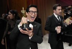 LOS ANGELES (AP) — The Slap? What slap? Sunday’s Oscar ceremony felt more like a big hug, its heartwarming and heartfelt speeches a potent antidote to the uneasy memory of last year’s Will Smith incident. Many of these speeches came from the cast and creatives of “Everything Everywhere All at Once,” the joyfully chaotic film that swept the top awards. Directors the Daniels and actors Ke Huy Quan, Jamie Lee Curtis and Michelle Yeoh provided emotional highpoints on a night that made history for Asians and Asian Americans in Hollywood and saw almost everyone thank Mom – and poignantly.