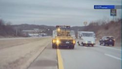 MOON TOWNSHIP, Pa. — (WPXI) – When you first see it, it’s hard to find words. A mail truck heading down the interstate going in the wrong direction. “It’s surreal. All those cliches hit you, your life flashes in front of your eyes and I was scared. I was having a calm trip then all of a sudden, I’m like whoop,” Daniel Freeman said. Freeman was living it. Driving home from a weekend away, he’s approaching Waynesburg going northbound on I-79 when he sees state troopers and flashing lights on both sides of the interstate. “People started pulling over on the shoulder and I was going to go around the truck in front of me and as I’m going around, I see a mail truck coming up the center of the highway at me.” Moon Township Police say a USPS employee refused to return the truck Sunday afternoon. That employee is 35-year-old Tyler Floro and troopers found him in Waynesburg where they tried pulling him over in the southbound lanes of I-79. But he went through the median and started going south in the northbound lanes for over two miles when he was captured on this video. Troopers tried multiple maneuvers before finally getting Floro off the road and into custody. He’s now in the Greene County Prison facing charges out of Greene and Allegheny Counties “It was determined that he was under the influence of drugs and was in possession of drug paraphernalia. While in police custody he did assault an officer and was charged with aggravated assault for that, fleeing and eluding and multiple other charges related to his offenses,” said Trooper Kalee Barnhart with PSP. (PHOTO: Daniel Freeman dash cam/WPXI)