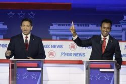 Former President Donald Trump and Florida Gov. Ron DeSantis have dominated the Republican presidential nomination fight for much of the year. Neither dominated the debate stage Wednesday night. Trump skipped the GOP’s opening presidential primary debate. DeSantis showed up, but he was overshadowed for much of the night by political newcomer Vivek Ramaswamy. Ramaswamy has crept up in recent polls, leading to his position next to DeSantis at center stage. And he quickly showed why when he showcased his ready-for-video, on-message approach. His rivals, however, attacked him for his lack of political experience and his view that the U.S. should stop supporting Ukraine.