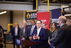 Pittsburgh, Pa. – Governor Josh Shapiro and Department of Community and Economic Development (DCED) Secretary Rick Siger joined legislative and business leaders during a visit to Mill 19 in Pittsburgh to highlight the important role of robotics and advanced manufacturing in the Commonwealth’s new Economic Development Strategy, the first plan of its kind to guide the Commonwealth in almost 20 years. Governor Shapiro unveiled the ten year strategy Tuesday at OraSure Technologies in the Lehigh Valley. Shapiro says the new economic development strategy will capitalize on the commonwealth’s strengths and reignite the economy by focusing on the agriculture, energy, life sciences, manufacturing, and robotics and technology sectors, where data-driven analysis reveals a significant potential for growth over the next ten years. Shapiro says that compared to neighbor states, the commonwealth is being outspent on economic development incentives, with states like New York and Ohio leveraging as much as 16 times our total incentive spend and for Pennsylvania to maintain and advance economic competitiveness, we must double down on our strengths while investing in those areas where we need to grow. This strategy seeks to do just that by capitalizing on our substantial strengths in the robotics and technology industries.
