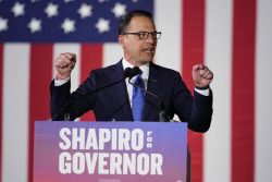 HARRISBURG, Pa. (AP) — Democrat Josh Shapiro won the race for governor of Pennsylvania, securing the office for four years in a state where the future of abortion rights is on the line, along with management of the 2024 election in a battleground that is often decisive in choosing presidents. Shapiro, the state’s two-term elected attorney general, ran to the middle on several key issues and smashed Pennsylvania’s campaign finance record in a powerhouse campaign, swamping Republican Doug Mastriano in a deluge of TV ads. He had led polls from the start over Mastriano, and his victory — in a year in which Democrats nationally faced headwinds, including high inflation — made him the first governor to be elected to succeed a member of his party since 1966.“Tonight, voters from Gen Z to our seniors, voters from all walks of life, have given me the honor of a lifetime, given me the chance to serve you as Pennsylvania’s next governor,” Shapiro told a cheering crowd of hundreds in his home of Montgomery County, in suburban Philadelphia. Shapiro thanked his family and supporters and went on to tell the crowd that “real freedom won tonight” and “Democracy endured” in a race he characterized as, in part, a fight to preserve the right to vote, the right to organize a union and the right to an abortion. He also thanked Republicans he said had voted for a Democrat for the first time, and said that with their vote “comes a responsibility to govern by bringing people together and getting things done.”