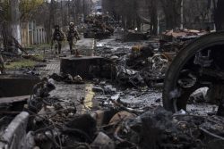 BUCHA, Ukraine (AP) – Foreign outrage is mounting over evidence of possible executions and other atrocities by Russian forces in Ukraine. Germany’s defense minister reacted to the new evidence by saying Europe must consider stepping up penalties for Moscow by boycotting its gas exports, an economically painful step European leaders previously avoided. Japanese Prime Minister Fumio Kishida condemned attacks on civilians after bodies were found with signs of torture in areas abandoned by Russian forces. New Zealand Prime Minister Jacinda Ardern called reports of rape and other atrocities by Russian soldiers “beyond reprehensible.” Ukraine’s President Volodymyr Zelenskyy appealed in a video shown during the Grammy Awards for musicians and other artists to help tell the story of Russia’s invasion.