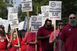 (AP) – The United Auto Workers expanded its strike against major automakers Friday, walking out of 38 General Motors and Stellantis parts distribution centers in 20 states. Ford was spared additional strikes because the company has met some of the union’s demands during negotiations over the past week, said UAW President Shawn Fain. The union is pointing to the companies’ huge recent profits as it seeks wage increases of 36% over four years. The companies have offered a little over half that amount. The UAW has other demands, including a 32-hour work week for 40 hours of pay and a restoration of traditional pension plans for newer workers.