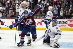 DENVER (AP) – Andre Burakovsky scored 1:23 into overtime and the Colorado Avalanche opened the Stanley Cup Final with a 4-3 victory over the two-time defending champion Tampa Bay Lightning Wednesday night. Burakovsky ended it after the Avalanche failed to score on a power play that began late in regulation when three-time champ Patrick Maroon put the puck over the glass. Burakovsky is one of only two Avalanche players who have won the Cup. The game likely wouldn’t have even reached OT if not for big penalty kills by the Avalanche, who were 3 for 3 against Tampa Bay’s potent power play. The final kill featured a crucial save by goaltender Darcy Kuemper and a series of clears by Norris Trophy finalist defenseman Cale Makar.