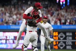 PHILADELPHIA (AP) — Michael Lorenzen threw the 14th no-hitter in Philadelphia Phillies history, a dazzling performance in only his second start with his new team, which beat the Washington Nationals 7-0. The 31-year-old Lorenzen struck out five, walked four and improved to 2-0 since he was acquired from Detroit at the trade deadline for a minor leaguer. Lorenzen retired Lane Thomas on a grounder to open the ninth and struck out Joey Meneses looking. The crowd of 30,406 erupted when Lorenzen retired Dominic Smith on a flyball on his 124th pitch to end the game. Lorenzen flipped his cap backward and was mobbed by his teammates in a rowdy celebration near the plate.