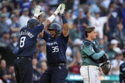 SEATTLE (AP) — Elias Díaz hit a two-run homer off Félix Bautista in the eighth inning, and the National League snapped a nine-game losing streak in the All-Star Game with a 3-2 win over the American League. The NL won for the first time since an 8-0 victory in 2012 in Kansas City thanks to Díaz, a catcher who became the first Rockies player to win the All-Star MVP award. Díaz, who was non-tendered by the Pirates at the end of 2019, drove a 2-2 pitch from Baltimore’s hard-throwing closer deep to left to put the NL in front. Díaz was the lone representative for Colorado in his first All-Star Game appearance.