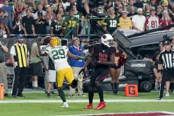 GLENDALE, Ariz. (AP) – The Green Bay Packers have knocked off the NFL’s last unbeaten team. The Packers came away with a 24-21 win over the Cardinals when Kyler Murray threw an interception on second-and-goal with 12 seconds remaining. The pick came shortly after the Packers were stopped on downs near the Arizona goal line. Aaron Rodgers threw two touchdown passes to Randall Cobb as the Packers won their seventh straight since a season-opening loss to New Orleans. Rodgers was 22 of 37 for just 184 yards and no interceptions. Murray finished with 274 yards passing and two interceptions as the Cardinals fell to 7-1.