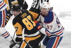 PITTSBURGH (AP) — Sidney Crosby had a goal and two assists to move into ninth on the NHL’s career scoring list as the Pittsburgh Penguins beat Connor McDavid and the Edmonton Oilers 5-3. The Penguins captain tied Hall of Famer Joe Sakic at 1,641 points with an assist on Bryan Rust’s first-period goal. Crosby then moved past Sakic with an assist on Drew O’Connor’s sixth goal of the season later in the period as the Penguins raced to a 4-1 advantage. Rust also had a goal and two assists for Pittsburgh. McDavid finished with three assists and Leon Draisaitl scored twice for Edmonton.