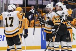 NASHVILLE, Tenn. (AP) — Bryan Rust scored his second goal of the game 1:07 into overtime and Sidney Crosby had a season-high four points as the Pittsburgh Penguins beat the Nashville Predators 5-4. Rust also had two assists and Crosby finished with a goal and three assists. Rickard Rakell and Erik Karlsson each had a goal and an assist for the Penguins, who have won three of four. Tristan Jarry made 22 saves. Crosby, the Pitsburgh captain, snapped a 10-game goal drought. Steven Stamkos, Jonathan Marchessault, Luke Evangelista and Brady Skjei scored for Nashville. Juuse Saros stopped 15 shots, and Filip Forsberg had two assists.