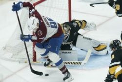 PITTSBURGH (AP) — Mikko Rantanen collected his 10th career hat trick and added two assists as the Colorado Avalanche beat the Pittsburgh Penguins 6-2. Rantanen flipped in a puck over Tristan Jarry late in the first period for his 16th goal of the season. He picked up his 17th early in the second and added an empty netter late to celebrate his 600th game in style. Nathan MacKinnon added a goal and four assists for Colorado, which finished 4-1 on a five-game road trip. Michael Bunting and Cody Glass scored for Pittsburgh, which lost for just the second time in its last seven games.