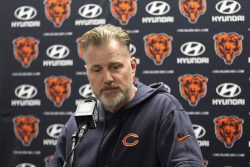 CHICAGO (AP) — Matt Eberflus has been fired by the Chicago Bears, one day after botching a timeout in a loss to Detroit. Offensive coordinator Thomas Brown will serve as interim coach, the Bears said in a statement. Eberflus was 14-32 in two-plus seasons with the Bears, who fell to 4-8 with their sixth straight loss on Thursday. The Bears began the season eyeing a playoff spot following an offensive overhaul but are now last in the NFC North. Eberflus’ 14-31 record in 2 1/2 seasons ranks among the worst in the history of the founding NFL franchise.