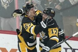 PITTSBURGH (AP) — Bryan Rust had two goals and an assist to help the Pittsburgh Penguins beat the Vancouver Canucks 5-4. Blake Lizotte scored after missing five games with a concussion, while Kevin Hayes had a power-play goal and Rickard Rakell also scored for Pittsburgh. Erik Karlsson had three assists, while Sidney Crosby had two as the Penguins built a 4-1 lead through one period. Tristan Jarry stopped 25 shots for the Penguins. The Canucks trailed 5-2 entering the third period before Quinn Hughes and Elias Pettersson cut it to a one-goal deficit. Pius Suter and Aatu Raty also scored for the Canucks. Arturs Silovs made 18 saves.