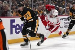 PITTSBURGH (AP) — Simon Edvinsson scored 1:30 into overtime, and the Detroit Red Wings beat the Pittsburgh Penguins 3-2. Patrick Kane had a goal and an assist for Detroit. Jonatan Berggren also scored, and Cam Talbot stopped 32 shots in his 250th career win. Kane scored during a power play in the second. It was his first goal since Oct. 24 and his third on the season. Anthony Beauvillier and Bryan Rust scored for Pittsburgh.