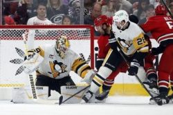 RALEIGH, N.C. (AP) — Jack Roslovic had two goals and an assist as the Carolina Hurricanes beat the Pittsburgh Penguins 5-1 for their eighth straight win. Jordan Martinook, Jaccob Slavin and Eric Robinson also scored for Carolina, and Jalen Chatfield had three assists. Pyotr Kochetkov stopped 35 shots. Blake Lizotte scored for Pittsburgh and Alex Nedeljkovic had 14 saves. The Penguins lost for the eighth time in 10 games (2-6-2).