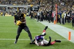 PITTSBURGH (AP) — Calvin Austin III returned a punt for a touchdown and hauled in a lob by Russell Wilson for another score as the Pittsburgh Steelers beat the New York Giants 26-18. Austin raced across the field before sprinting down the sideline for a 73-yard touchdown in the third quarter that gave the Steelers the lead for good. He added a 29-yard over-the-shoulder grab from Wilson early in the fourth as Pittsburgh won its 22nd straight home game under the Monday night lights. Rookie Tyrone Tracy ran for a season-high 145 yards and a touchdown for New York. The Giants have lost three straight.