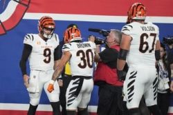 EAST RUTHERFORD, N.J. (AP) — Joe Burrow scored on a career-long 47-yard run on the opening possession, and the Cincinnati Bengals’ defense carried them to a much-needed 17-7 victory over the New York Giants. Evan McPherson made a go-ahead 37-yard field goal in the third quarter after a botched snap and hold contributed to him missing a potential game-winning kick a week earlier. And Chase Brown scored on a 30-yard run with 1:52 to play to give the Bengals some hope after a dismal start to the season. Cincinnati is now 2-4. The Giants fell to 2-4 and they are winless in three home games with one touchdown.