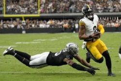 LAS VEGAS (AP) — Najee Harris finally found his form after a slow start to the season, rushing for 106 yards and a touchdown to lift the Pittsburgh Steelers to a 32-13 victory over the Las Vegas Raiders. Harris exceeded 100 yards for the first time since ending last season with back-to-back such performances. Quarterback Justin Fields added 59 yards on the ground and two TDs, though he passed for just 145 yards. Pittsburgh had its highest-scoring game since last season as it stopped a two-game skid to improve to 4-2. Aidan O’Connell finished 27 of 40 for 227 yards with a touchdown pass and an interception for the Raiders.