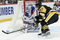 PITTSBURGH (AP) — Igor Shesterkin stopped 29 shots and the New York Rangers opened the season with a 6-0 victory over the Pittsburgh Penguins. Chris Kreider scored twice for the reigning Metropolitan Division champions. Sam Carrick, Alexis Lafreniere, Filip Chytil and Vincent Trocheck also scored for New York, which dominated Pittsburgh while beating the Penguins for the fifth time in their last six meetings. Penguins captain Sidney Crosby was held scoreless in his 20th season opener.
