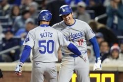 NEW YORK (AP) — Shohei Ohtani hit a leadoff homer and scored four times, Mookie Betts also went deep and drove in four runs, and the Los Angeles Dodgers routed the New York Mets 10-2 for a 3-1 lead in their lopsided National League Championship Series. Betts had a two-run homer and a two-run double among his four hits. Max Muncy extended his streak of reaching base safely to 12 plate appearances, a postseason record, and the Dodgers moved within one win of their 25th pennant — most in NL history. Game 5 is Friday at Citi Field, with Jack Flaherty expected to pitch for Los Angeles with an opportunity to put his hometown team in the World Series.
