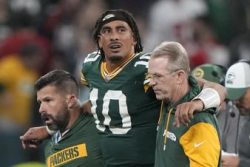 SAO PAULO (AP) — Green Bay quarterback Jordan Love was helped off the field after being injured in the final seconds of the Packers’ 34-29 loss to the Philadelphia Eagles on Friday night in Brazil. After driving the Packers beyond midfield, Love was pressured by Jalen Carter and Josh Sweat. Carter was lying down and had a hold of Love’s left leg when Sweat pushed the quarterback to the ground. Packers coach Matt LaFleur had no update on Love after the game. Love signed a four-year, $220 million extension this summer after leading the NFL’s youngest team to the playoffs last season, his first as a starter.