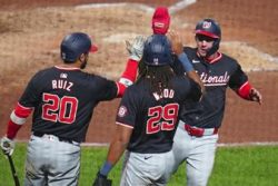 PITTSBURGH (AP) — Ildemaro Vargas hit a two-run double off Aroldis Chapman in Washington’s four-run ninth inning, and the Nationals beat the Pittsburgh Pirates 8-6 for a doubleheader sweep. The Nationals won 5-3 in the first game. DJ Herz pitched five hitless innings and fellow rookie Dylan Crews homered. Washington put together a two-out rally against Chapman in the second game. James Wood singled in Drew Millas to get the Nationals within one. With runners on second and third, Vargas was sent up to hit for Luis García Jr. With the Nationals down to their last strike, Vargas hit a sinking liner into right field that bounced off the glove of a diving Connor Joe.