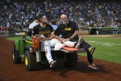 PITTSBURGH (AP) — Pittsburgh Pirates reliever Hunter Stratton ruptured the patella tendon in his left knee during the fourth inning of a 10-2 loss to Cincinnati and is out indefinitely. Stratton suffered the injury while trying to chase down the ball behind home plate. Stratton was covering home after uncorking a wild pitch that Pirates catcher Joey Bart tracked down. Bart flipped to Stratton, who missed the ball. The right-hander ran toward the backstop to retrieve the ball and slipped, with his left leg twisting awkwardly underneath him. He was replaced by Jalen Beeks. Manager Derek Shelton says Stratton will miss “significant time.”