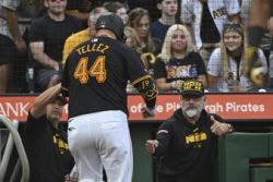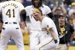PITTSBURGH (AP) — Yasmani Grandal hit a two-run homer in the ninth inning, sending the Pittsburgh Pirates to a 4-3 victory over the Cincinnati Reds. Bryan De La Cruz was hit by a pitch from Alexis Díaz before Grandal connected for his seventh homer — a drive into the first row above the Clemente Wall in right field. It was Grandal’s fourth career game-ending homer. Aroldis Chapman handled the ninth for the win. Elly De La Cruz reached on a leadoff single, but Chapman picked him off before striking out Tyler Stephenson and TJ Friedl. Isiah Kiner-Falefa had three hits for Pittsburgh, which won three of four in the series.