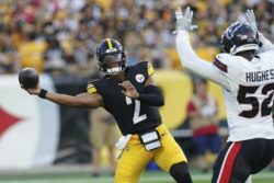 Latrobe, Pa. (AP) — Pittsburgh Steelers quarterback Justin Fields is eager to learn behind Russell Wilson, while also pushing the nine-time Pro Bowler and former Super Bowl champion at the same time. Fields will get his first chance to display his dynamic first-round talent when he starts the Steelers’ preseason opener Friday against Houston. Wilson injured his calf on the day the Steelers reported to training camp. For the preseason opener, head coach Mike Tomlin opted to sit the veteran signal caller, who has gotten a limited workload during practices at St. Vincent College.