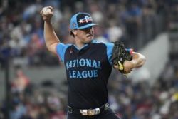 ARLINGTON, Texas (AP) — Paul Skenes became the fifth rookie to start an All-Star Game, retiring Steven Kwan, Gunnar Henderson and Aaron Judge for the National League in a hitless first inning. The 22-year-old right-hander, who has just 11 big league appearances, started Kwan with a 98.2 mph four-seamer and retired the major league batting leader on a 99.9 mph pitch with an 0-2 count that Kwan popped up. Henderson hit a weak comebacker on a 93.5 mph sinker and Juan Soto worked out a seven-pitch walk. Aaron Judge grounded into a forceout on the next pitch. The American League went on to a 5-3 win over the National League.