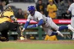 PITTSBURGH (AP) — Paul Skenes struck out seven over four-plus innings in his major league debut and Yasmani Grandal hit a go-ahead three-run homer as the Pittsburgh Pirates edged the Chicago Cubs 10-9. Skenes, the top overall pick in the 2023 draft, showed flashes of why he is considered perhaps the best pitching prospect in a generation. The 21-year-old reached 100 mph on 17 of his 84 pitches. Pittsburgh hit five home runs in all. Miles Mastrobuoni had three hits for the Cubs. (Photo: AP)