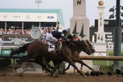 LOUISVILLE, Ky. (AP) — Mystik Dan won the 150th Kentucky Derby in a dramatic three-horse photo finish, edging out Sierra Leone and Forever Young for the upset victory. It was the 10th Derby to be decided by a nose, the closest margin in horse racing. Sent off at 18-1 odds, Mystik Dan and jockey Brian Hernandez Jr. rode the rail down the stretch with a short lead. Sierra Leone and Forever Young from Japan gave chase and pressured the leader to the wire in front of 156,710 at Churchill Downs on Saturday. Hernandez and trainer Kenny McPeek had teamed to win the Kentucky Oaks for fillies a day earlier with Thorpedo Anna. Mystik Dan ran 1 1/4 miles in 2:03.34 and paid $39.22 to win.