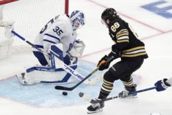 BOSTON (AP) — David Pastrnak scored on a feed from Hampus Lindholm 1:54 into overtime and the Boston Bruins beat the Toronto Maple Leafs 2-1 in Game 7 to clinch their first-round series and advance in the NHL playoffs. Jeremy Swayman finished with 30 saves and Lindholm had the tying goal in regulation to help the Bruins avoid losing their second straight first-round series after holding a 3-1 lead. They have now defeated the rival Maple Leafs in Game 7 of the first round of the playoffs three times in the last seven years. Boston will meet the Florida Panthers, who upset the Bruins in seven games in the first round last year.