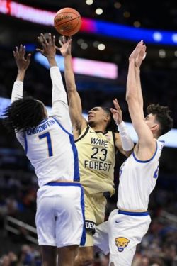 WASHINGTON (AP) — Ishmael Leggett scored 19 of his season-high 30 points in the second half and Pittsburgh turned away Wake Forest 81-69 on Thursday in the quarterfinals of the ACC Tournament. Friday, the fourth-seeded Panthers (22-10) will face top seed and No. 4-ranked North Carolina. Leggett was 11-of-18 shooting, repeatedly driving hard to the hoop, and collected eight rebounds and five steals. Blake Hinson hit four 3-pointers and added 20 points with Jaland Lowe adding 11 points and five assists. Cameron Hildreth led the fifth-seeded Demon Deacons (20-13) with 23 points. Hunter Sallis added 15 points, Andrew Carr 13 and Efton Reid III 12.