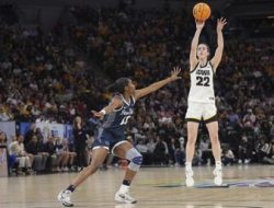 MINNEAPOLIS (AP) — Caitlin Clark broke the NCAA Division I record for 3-pointers in a season by a woman or man, finishing with 24 points, 10 rebounds and seven assists on a poor shooting night to lead No. 4 Iowa past Penn State 95-62 in the Big Ten Tournament quarterfinals. Clark missed her first 11 3s before finally connecting in the fourth quarter. It was her 163rd 3-pointer of the season, surpassing Stephen Curry of Davidson and Darius McGhee of Liberty for the most by a D-I player. Clark finished 2 of 14 from long range and 5 of 19 overall. But Iowa still had little trouble with Penn State.