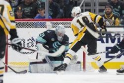 SEATTLE (AP) — Philipp Grubauer made 33 saves and posted his first shutout of the season, Oliver Bjorkstrand and Alex Wennberg scored goals and the Seattle Kraken beat the Pittsburgh Penguins 2-0. Grubauer was terrific for the second straight game and recorded the 21st regular-season shutout of his career. Seattle picked up a crucial two points in its attempt to stay relevant in the Western Conference wild-card race and with next week’s trade deadline drawing ever closer. The Kraken have won three of their last four and have points in six of their past seven games. Pittsburgh had its three-game win streak snapped.