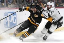 PITTSBURGH (AP) — Adrian Kempe scored twice in the third period as the Los Angeles Kings rallied past the Pittsburgh Penguins 2-1. The Kings won their third straight to finish off a four-game road trip by beating the Penguins on a night Pittsburgh honored franchise icon Jaromir Jagr, who had his No. 68 retired during a pregame ceremony. Sidney Crosby scored his 31st goal of the season for Pittsburgh but the Penguins lost ground in the scramble for a playoff spot in the Eastern Conference.