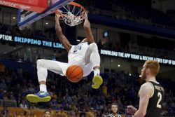 PITTSBURGH (AP) — Carlton Carrington scored 24 points, Ishmael Leggett added 22 and Pittsburgh rallied to beat Wake Forest 77-72. Pitt trailed by as many as 12 points early in the second half, and tied it three times before Carrington’s two free throws gave the Panthers their first lead of the game, 57-55, with 6:58 remaining. Hunter Sallis hit a jumper for Wake Forest to tie it 57-all. Leggett followed with a 3, sparking a 14-4 run to give Pitt a 71-61 advantage with 1:20 to play. Pitt (13-8, 4-6 ACC) snapped a four-game home losing streak in ACC play. Sallis scored 22 points for Wake Forest (13-7, 5-4).