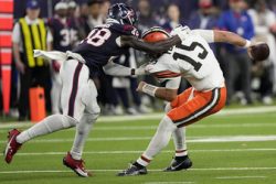 HOUSTON (AP) — From the couch to the playoffs, Joe Flacco had an incredible run with the Cleveland Browns. But his stretch of success came to a sudden end on Saturday, when the Browns lost 45-14 to the Houston Texans in a wild-card playoff matchup. Flacco had interceptions returned for touchdowns on consecutive drives in the third quarter to turn a close game into a laugher. It was Cleveland’s worst playoff loss since a 34-0 defeat to the Baltimore Colts on Dec. 29, 1968. The 39-year-old Flacco went 4-1 as a starter in the regular season to carry the Browns to the playoffs after Deshaun Watson suffered a season-ending shoulder injury.