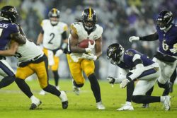 BALTIMORE (AP) — Mason Rudolph threw a 71-yard touchdown pass to Diontae Johnson on the first play of the fourth quarter, and the Pittsburgh Steelers took a step toward the postseason with a 17-10 win over the Baltimore Ravens. Rudolph led Pittsburgh to three straight wins to close the season, and now the Steelers wait. They would make the playoffs Sunday if Buffalo loses to Miami or Jacksonville loses to Tennessee. There was some bad news for the Steelers. The Ravens have already locked up the No. 1 seed in the AFC and held Lamar Jackson out of this game. (Photo: AP)