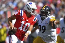 FOXBOROUGH, Mass. (AP) — Aaron Rodgers threw a go-ahead 17-yard touchdown pass to Calvin Austin III with 2:16 left, and the Pittsburgh Steelers beat the New England Patriots 21-14. Rodgers passed for 139 yards and two touchdowns, Kenneth Gainwell ran for a 1-yard TD and the Steelers’ defense forced five turnovers to help Pittsburgh win at New England for the first time since 2008. The Steelers had lost four since then in Foxborough, including the AFC championship game in the 2016 season. The Patriots were driving with a chance to tie and had fourth-and-1 at the Pittsburgh 28, but DeMario Douglas caught a pass from Drake Maye and was stopped for a 1-yard loss.