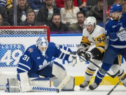 TORONTO (AP) — Martin Jones stopped 38 shots for his first shutout of the season, Max Domi had a goal and two assists, and the Toronto Blue Jays beat the Pittsburgh Penguins 7-0. Mitch Marner, William Nylander and Matthew Knies each had a goal and an assist, and John Tavares, Noah Gregor and Bobby McMann also scored for the Maple Leafs. Tyler Bertuzzi had three assists to help Toronto extend its point streak to nine games (6-0-3). Jones, making his third appearance and second start this season, got his 29th career shutout as the Maple Leafs spoiled former general manager Kyle Dubas’ return to Toronto. Tristan Jarry was pulled early in the second period by Pittsburgh after giving up four goals on 14 shots. Alec Nedeljkovic came on and finished with 18 saves.